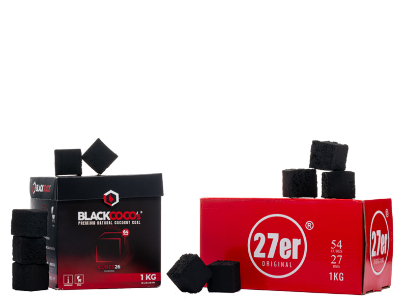 Naturkohle ist eine Art von Shisha-Kohle, die aus natürlichen Rohstoffen wie zum Beispiel Kokosfasern oder anderen organischen Materialien hergestellt wird. Die Kokosfasern werden aus den Kokosschalen gewonnen, welche bei der Palmölproduktion übrig bleiben. Sie wird in verschiedenen Grössen und Formen angeboten, wobei die Würfelform die gängigste ist. Würfel mit einem Durchmesser von 25 mm oder 26 mm sind Standardgrössen, aber es gibt auch kleinere oder grössere Varianten für unterschiedliche Vorlieben und Shisha-Köpfe. Naturkohle hat einen Kohlenstoffgehalt von 85 %. Das sorgt dafür, dass die Kohle heisser wird und weniger Arsche produziert.