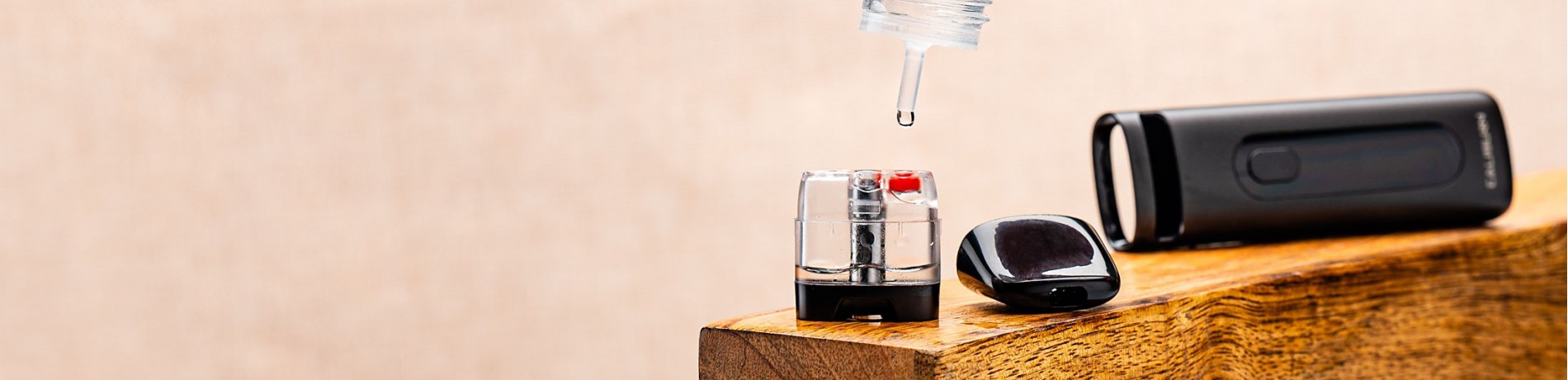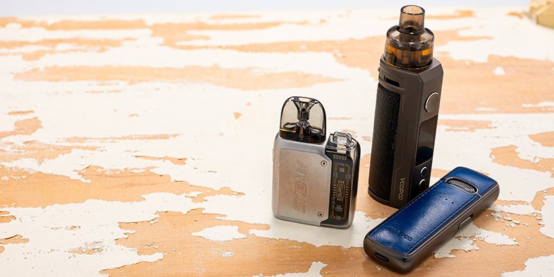 Der kompakte Voopoo Vmate E2 überzeugt mit einem robusten Metallgehäuse, beidseitigem Leder-Finish und einem schicken LED-Display unter einer Metallleiste, das dir den Akkustand jederzeit in Prozent anzeigt. Über die präzise und fest arretierbare Airflow lässt sich der Zugwiderstand auf der Vorderseite regulieren (der Vorgänger hatte die Airflow an der Seitenleiste). Die Pods vom Vorgänger sind weiterhin kompatibel. Zusätzlich gibt es beim Vmate E2 einen 0,4-Ohm-Pod, da der Nachfolger gegenüber seinem Vorgänger mit einer 1200-mAh-Batterie über eine Akkuleistung von 1500 mAh verfügt. Die Pods lassen sich ganz einfach magnetisch einsetzen.