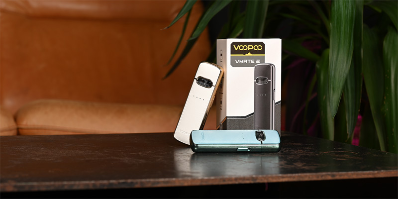 Der Voopoo Vmate Pro 2 überzeugt mit einem sehr wertigen Zinkgehäuse, das sich einfach sehr edel anfühlt. Die Leistung lässt sich bei diesem Vmate flexibel von 5 bis 30 Watt einstellen und wird durch zwei Modi ergänzt: einen sparsamen Eco-Modus für längere Nutzung und einen Power-Modus für eine individuellere Anpassung. Das schicke OLED-Display zeigt dir zusätzlich Akkustand, Leistung und Zugdauer an. Einfach ein sehr schicker Vape. Du kannst beim Pro übrigens dieselben Pods vom Vmate E und Vmate E2 verwenden. Der Vmate Pro 2 kommt ohne Schutzkappe aus.