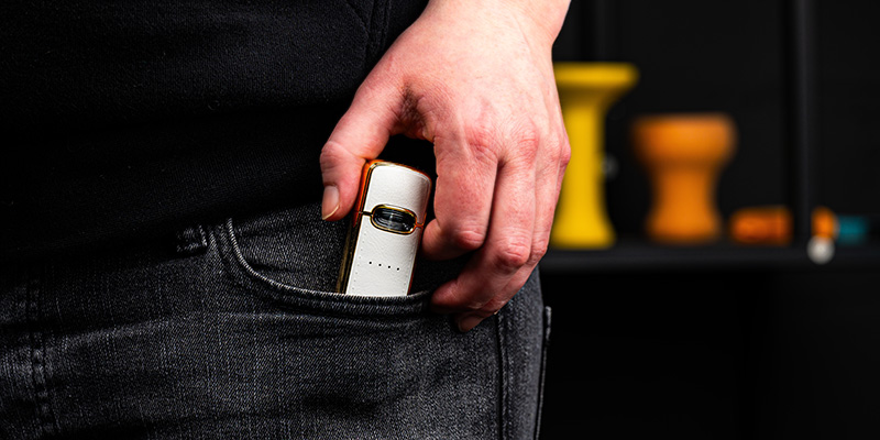 Ab und zu nehme ich den Vape auch in meiner Hosentasche mit, damit ich unterwegs dampfen kann. Ich muss sagen, die 5-A-Frische-Versiegelungstechnik hält, was sie verspricht. Das Liquid ist nie ausgelaufen, was bei anderen Vapes durchaus vorgekommen ist.